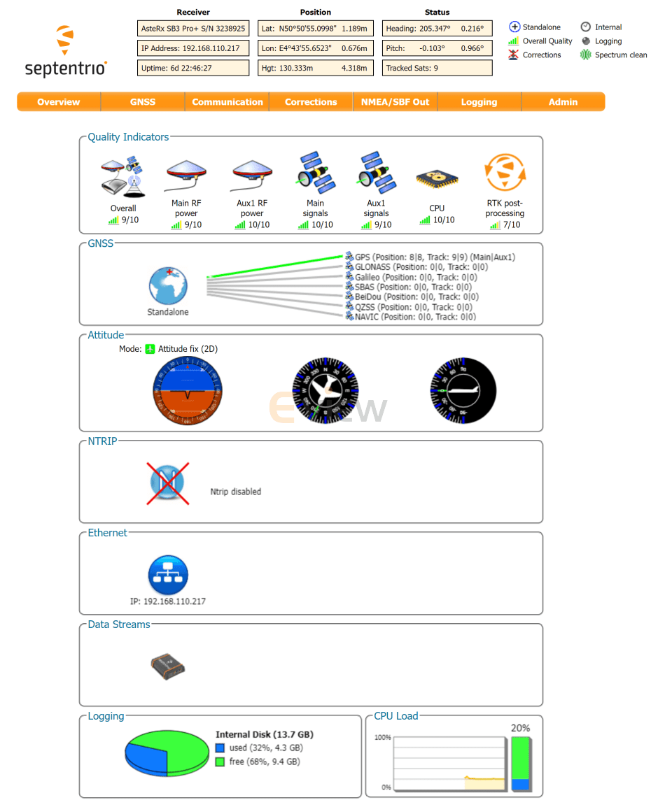 AsteRx SB3 ProBase offers full control to enable or to disable data processing functionality such as smoothing or multipath mitigation. Its quality indicators can be viewed remotely for efficient station health monitoring. It comes with fully documented interfaces, commands and data messages. The included GNSS receiver control and analysis software RxTools allows receiver configuration, monitoring as well as data logging and analysis.