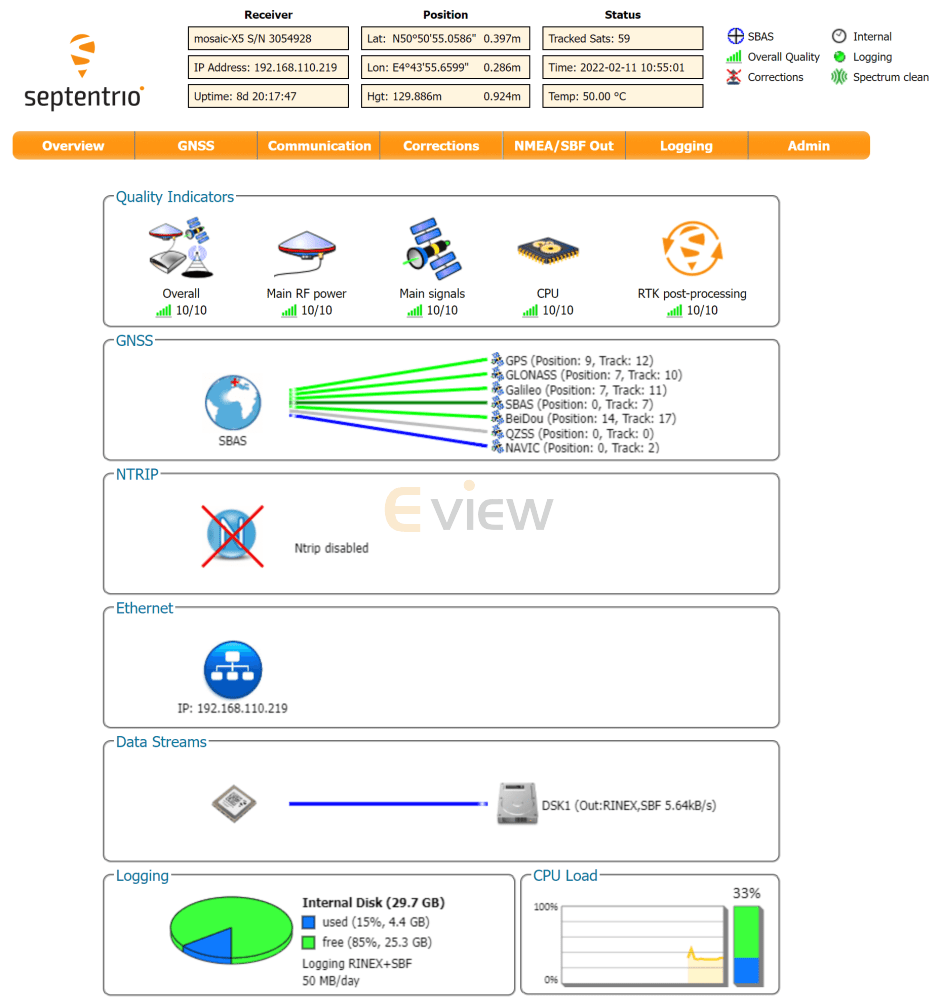 The receiver includes an intuitive web user interface for easy operation and monitoring allowing you to control the receiver from any mobile device or computer. The web interface also uses easy-to-read quality indicators ideal to monitor the receiver operation during the job at hand.